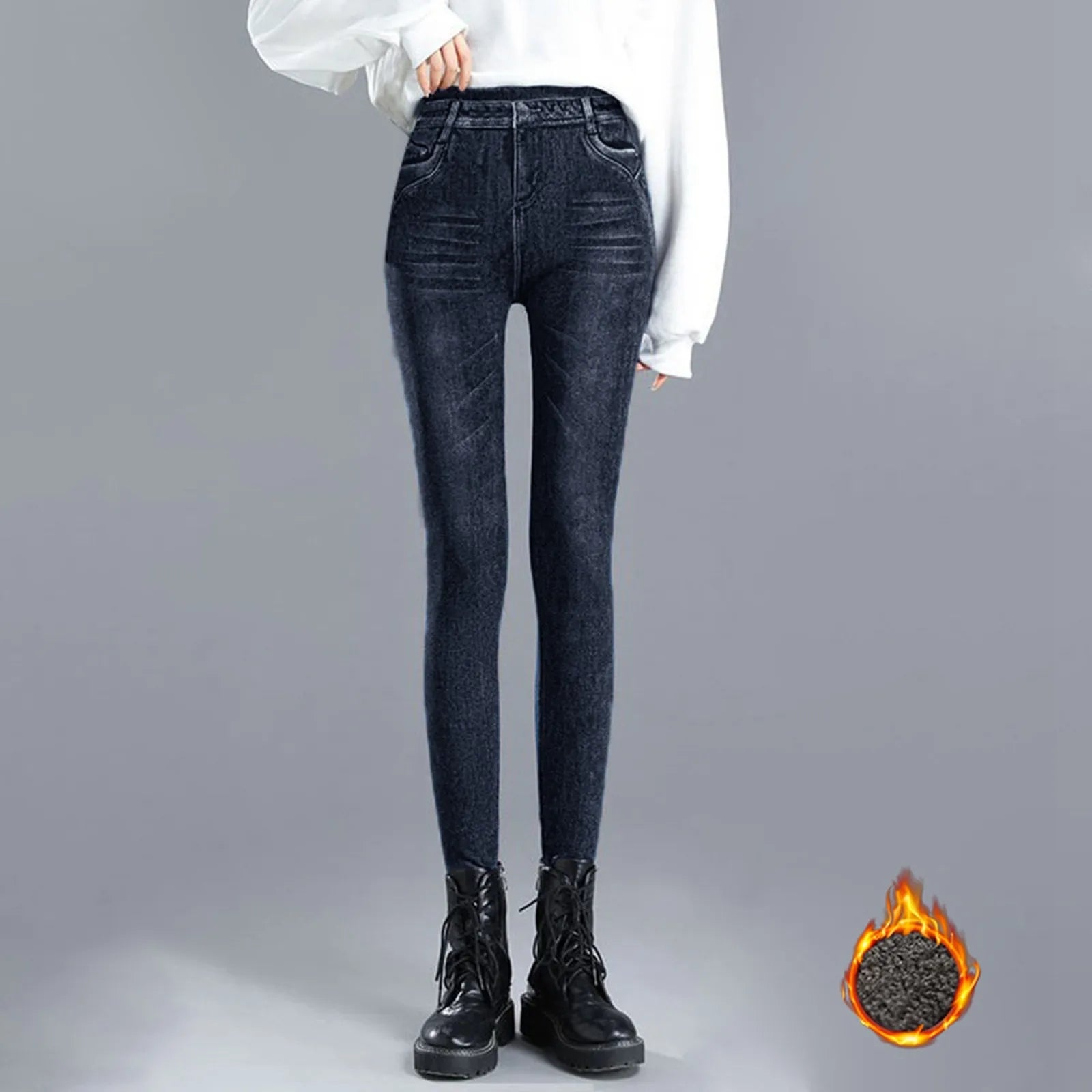 Elevate your everyday style with these high-waist jean leggings, combining the best of denim's classic appeal with the comfort of leggings. Designed for a flattering, sculpted fit, they provide a sleek silhouette while offering exceptional stretch for all-day ease. Perfect for casual outings or dressed-up looks, these leggings enhance curves and provide tummy control, making them a must-have for every wardrobe.